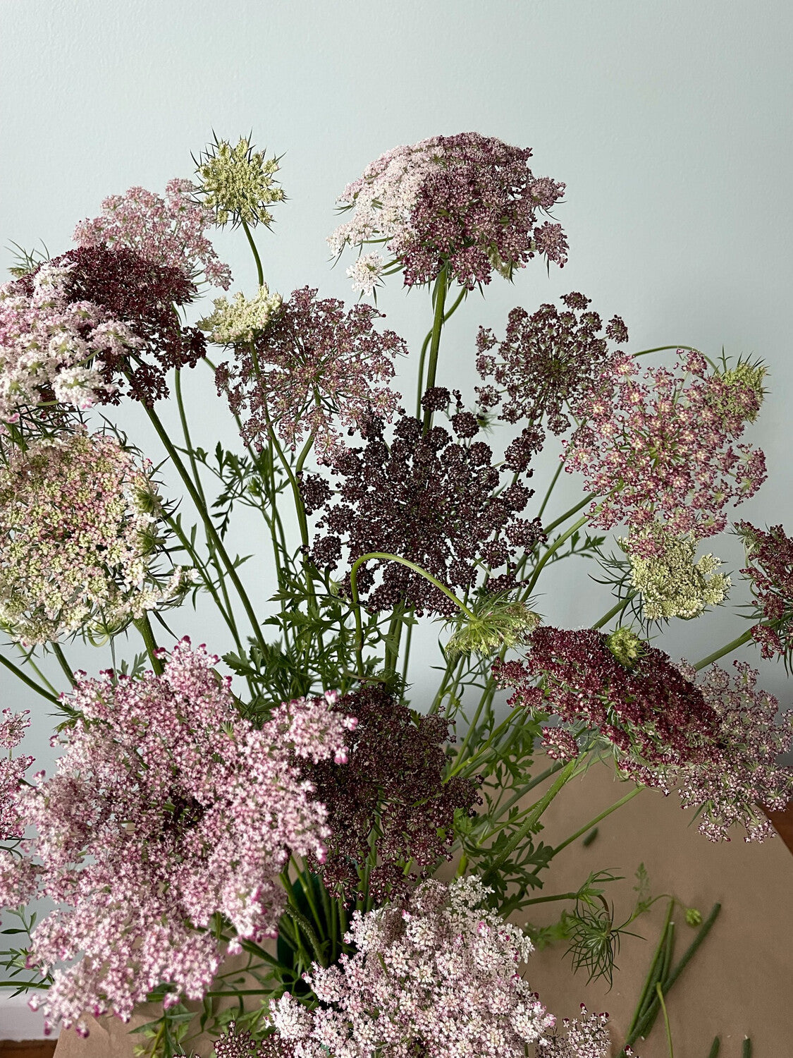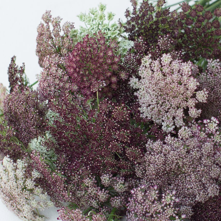 Up for sale is one pack of 50 Purple Kisses Queen Anne's Lace flower seeds (Daucus carota). Also known as Daucus this annual flower is an easier substitute for True Queen Anne's Lace which takes two years before it will flower. Unlike traditional Queen Anne's Lace these flower in shade of Chocolate, Pink, Purple, and White. Contains a much higher quantity of colored flowers than "Chocolate" Queen Anne's lace.